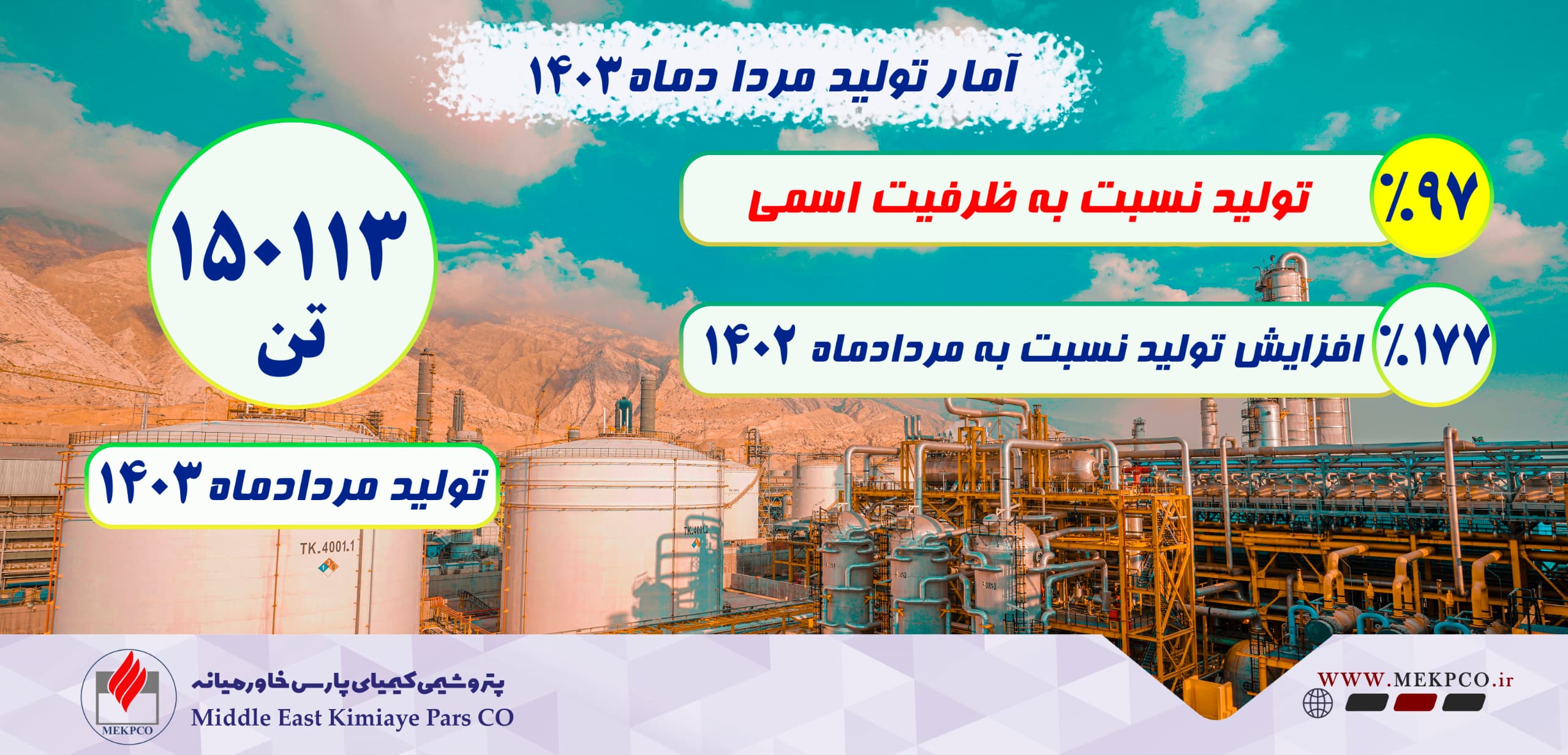 دکتر مظفری مدیرعامل شرکت پتروشیمی کیمیای پارس خاورمیانه با اشاره به رکورد شکنی مجدد تولید بیان نمود: کیمیا در مرداد ماه ۱۴۰۳ مقدار۱۵۰۱۱۳ تن متانول معادل با ۹۷ درصد ظرفیت اسمی و ۱۰۳ درصد نسبت به برنامه تعیین شده خود را تولید نمود که این بیشترین مقدار تولید از ابتدای راه اندازی تا کنون بوده است.